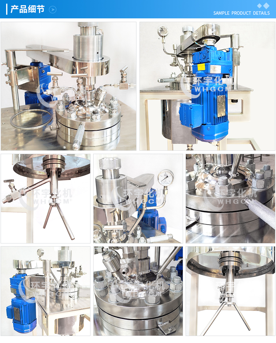 其他附件 如果用戶在釜蓋、釜體開口、內(nèi)部結(jié)構(gòu)、壓力高低、攪拌槳葉、及增加其他輔助裝置(如冷凝回流裝置、冷凝器、恒壓加料罐、接收裝置)等有特殊要求,可完全按用戶的要求加工制造