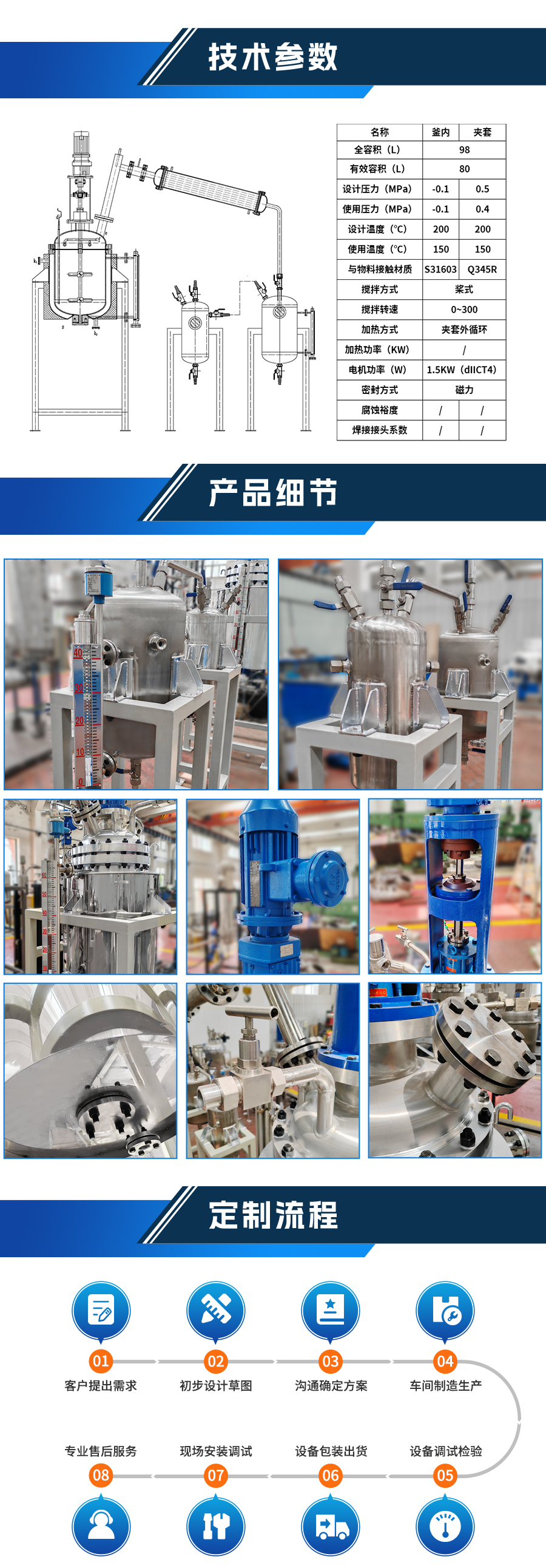 不銹鋼磁力蒸餾反應(yīng)釜 - 非標(biāo)定制參數(shù)