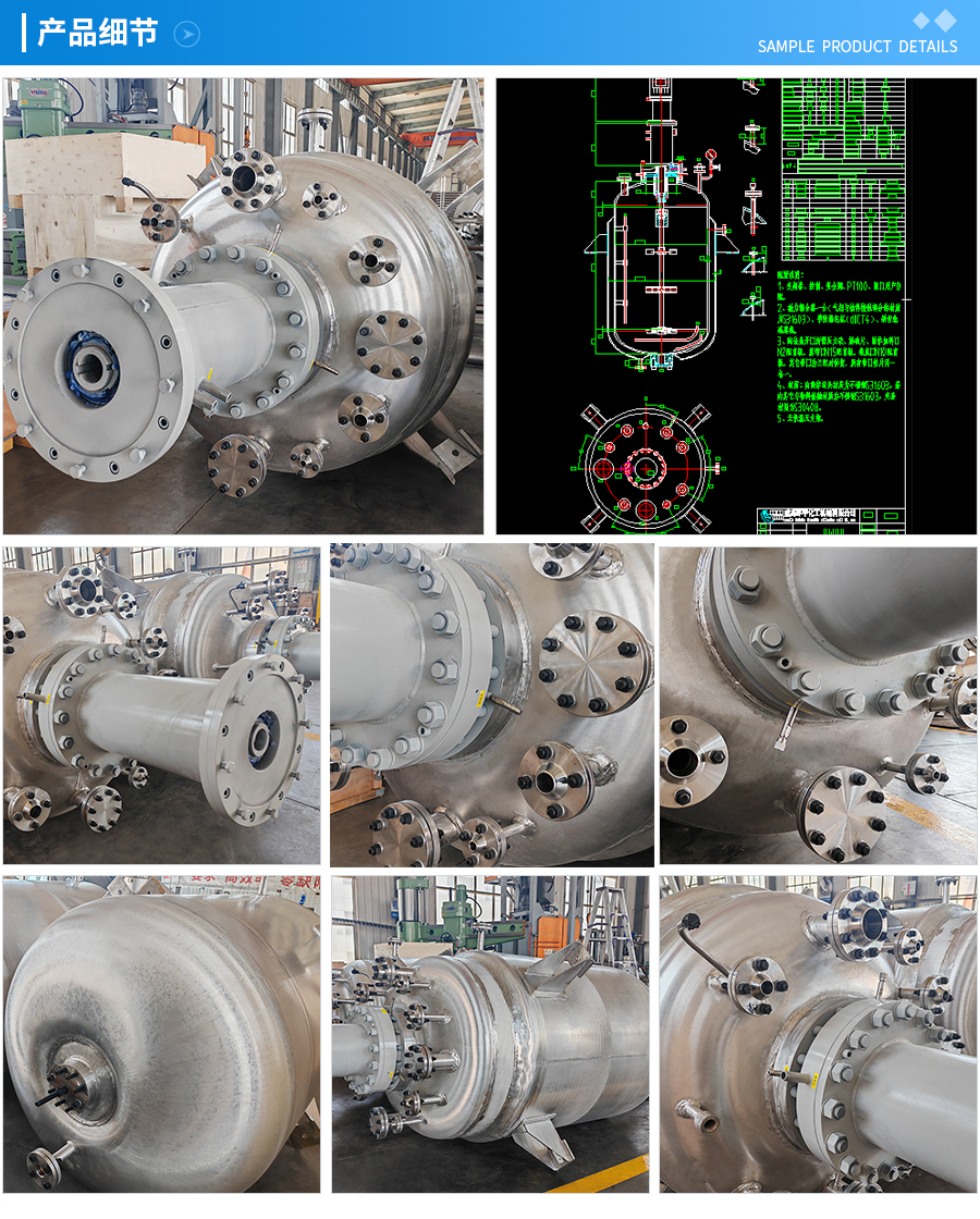 | 主要材料 | 釜體材料主要采用不銹鋼與碳鋼復(fù)合材質(zhì) S30408(304)+Q345R、S31603(316L) +Q345R、S32168(321)+Q345R, 也可是純不銹鋼材質(zhì),并可根據(jù)不同介質(zhì)要求制作鈦材、鎳材、鋯材、哈氏合金、蒙耐爾合金等復(fù)合材質(zhì)反應(yīng)釜,也可根據(jù)客戶(hù)要求主要材料噴涂四氟PTFE/PPL。 | ||||||